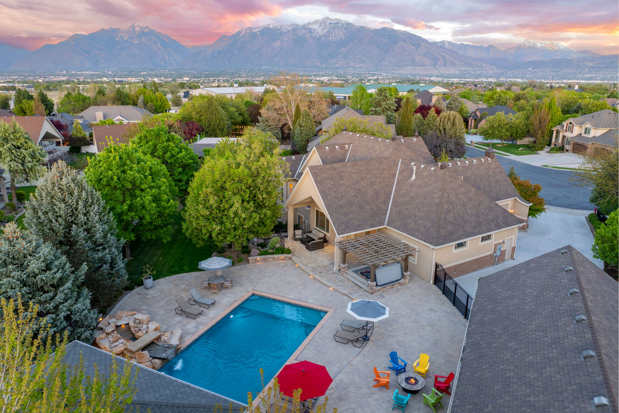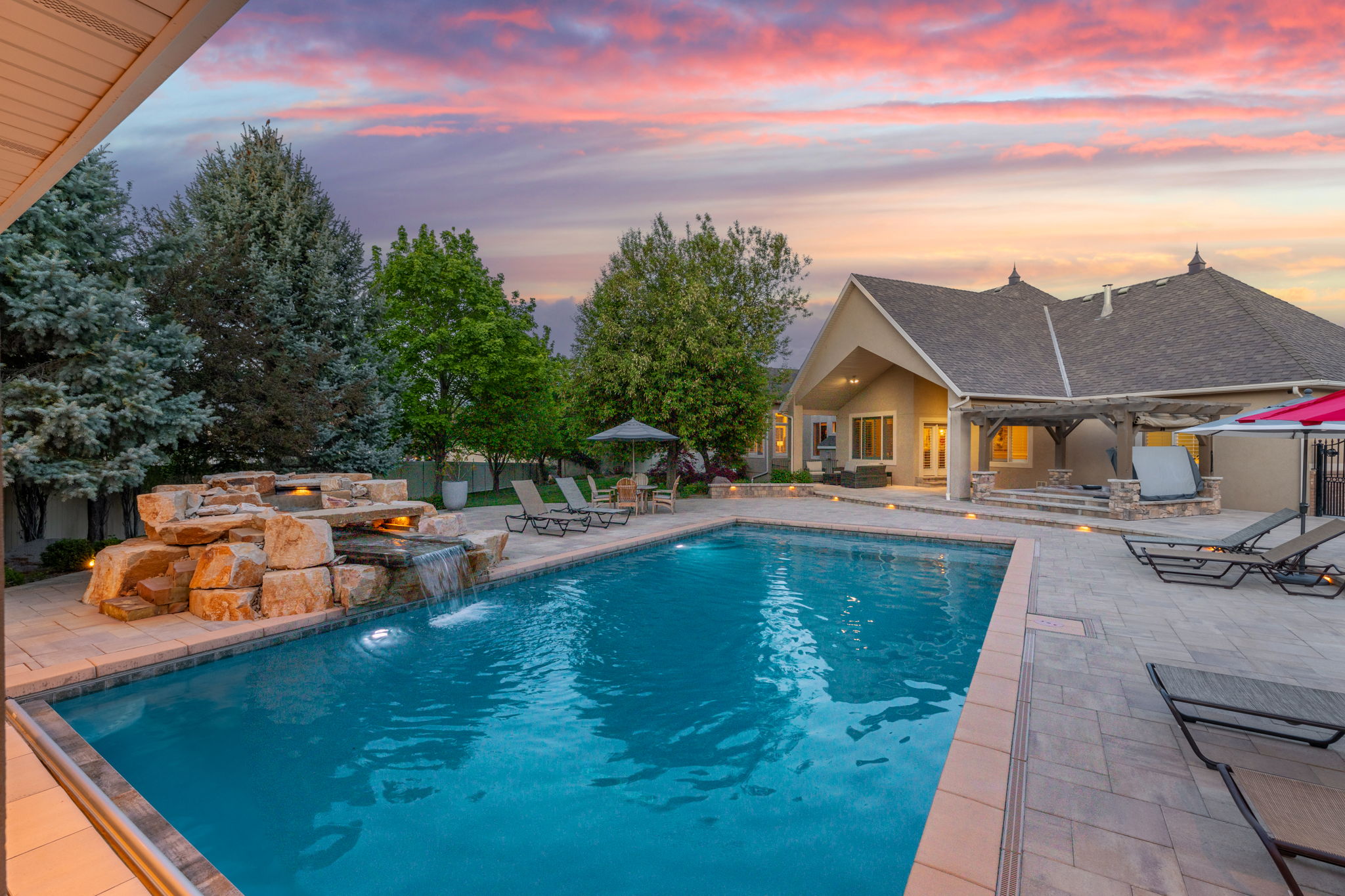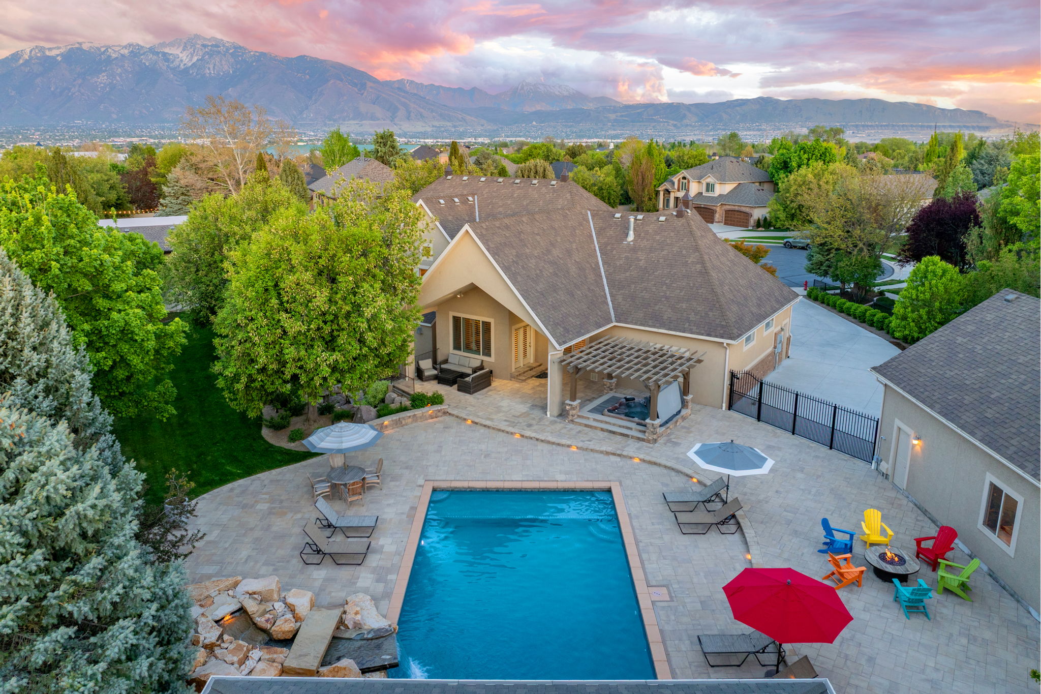 Enhancing the experience even further is a separate pool house designed as the ultimate guest retreat, complete with a full kitchen, bathroom, and a thoughtfully integrated Murphy bed. Whether hosting overnight guests or creating a private escape, this space offers a level of comfort and versatility that rivals a luxury suite—one your guests will never want to leave.