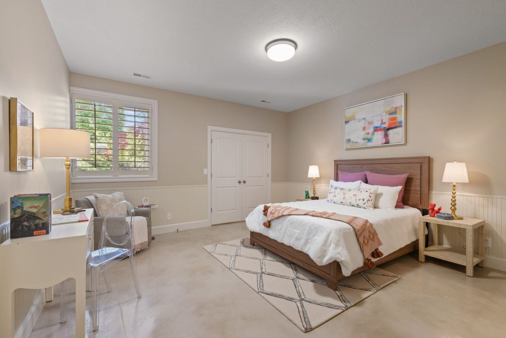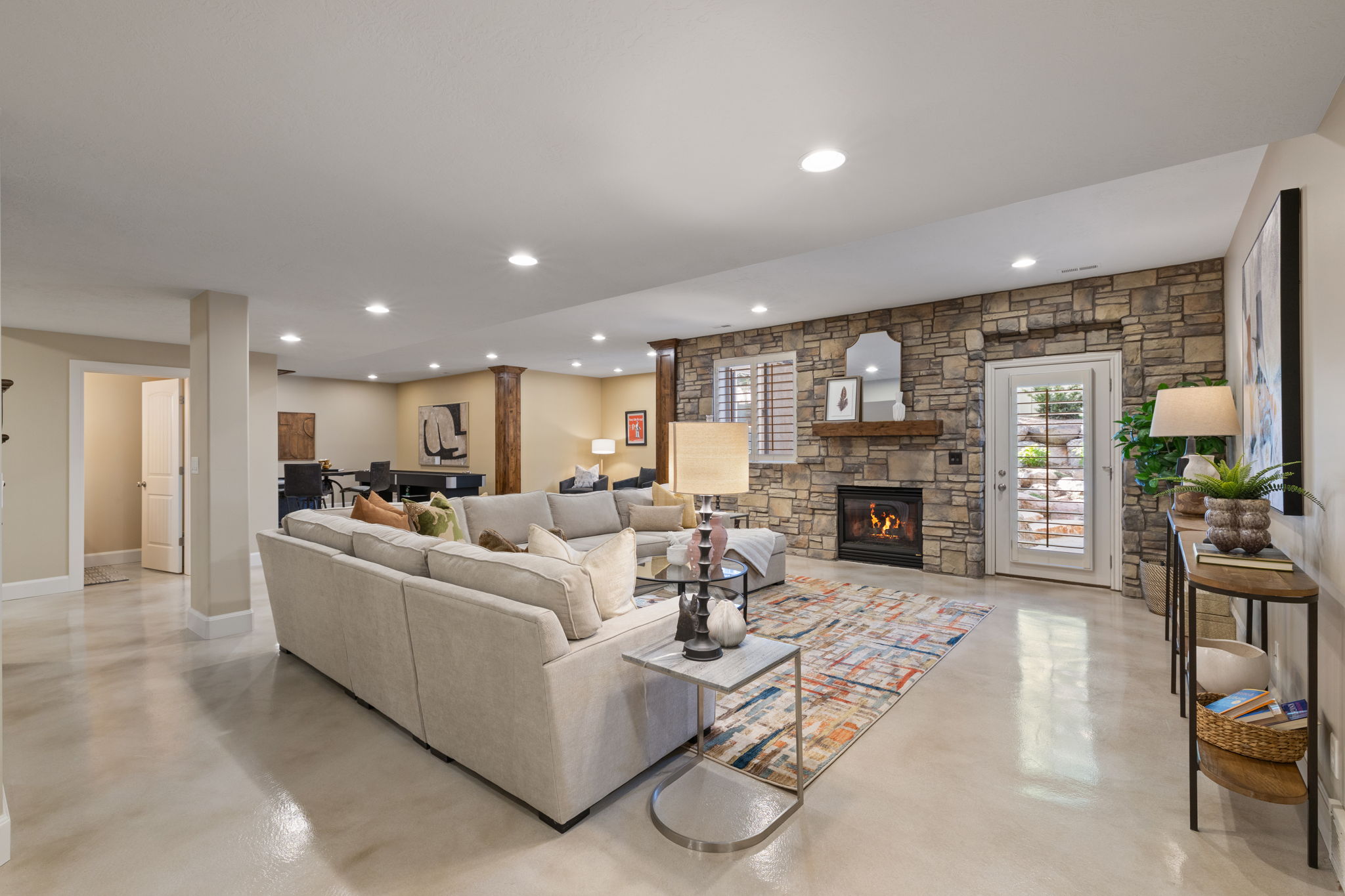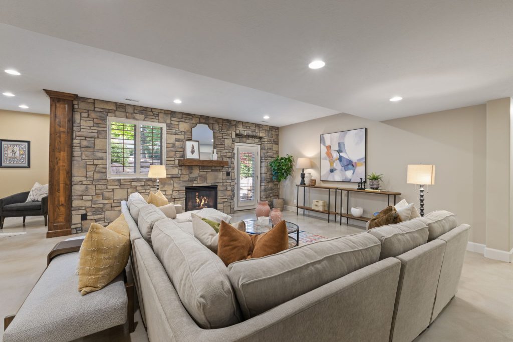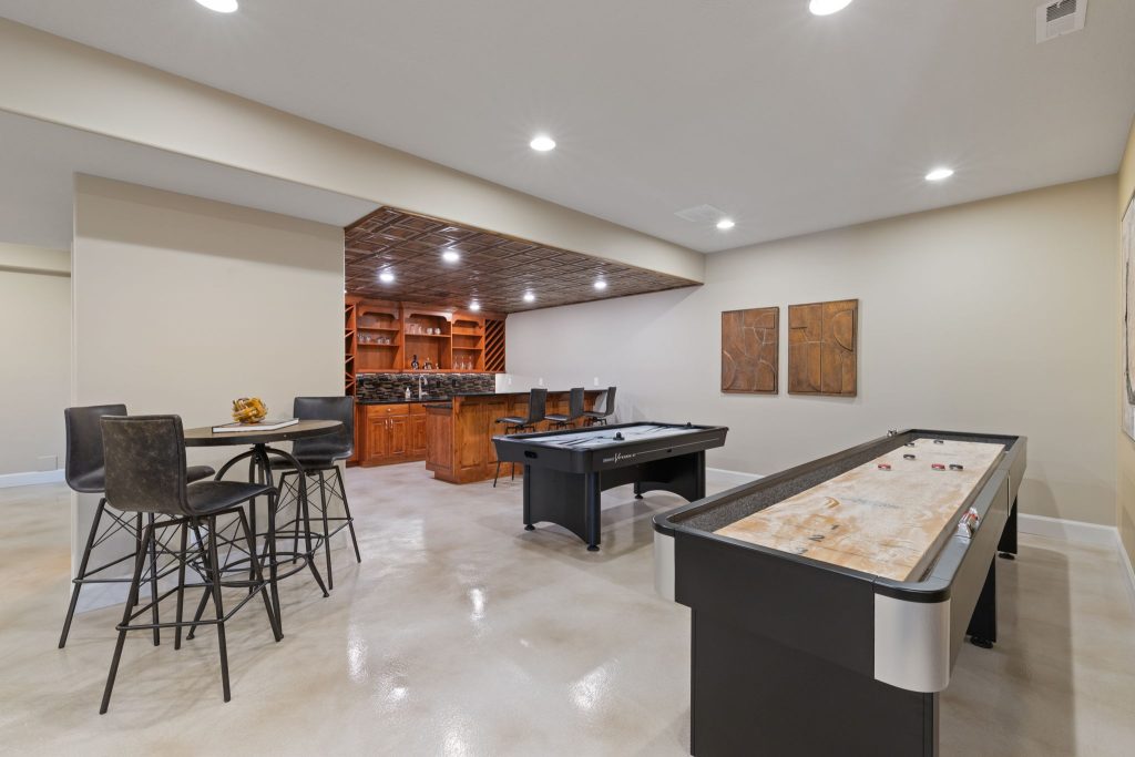 The lower level is designed with lifestyle in mind, complete with a full wet bar and an oversized entertaining area, making it the perfect extension of the home for gatherings, celebrations, or relaxed evenings.